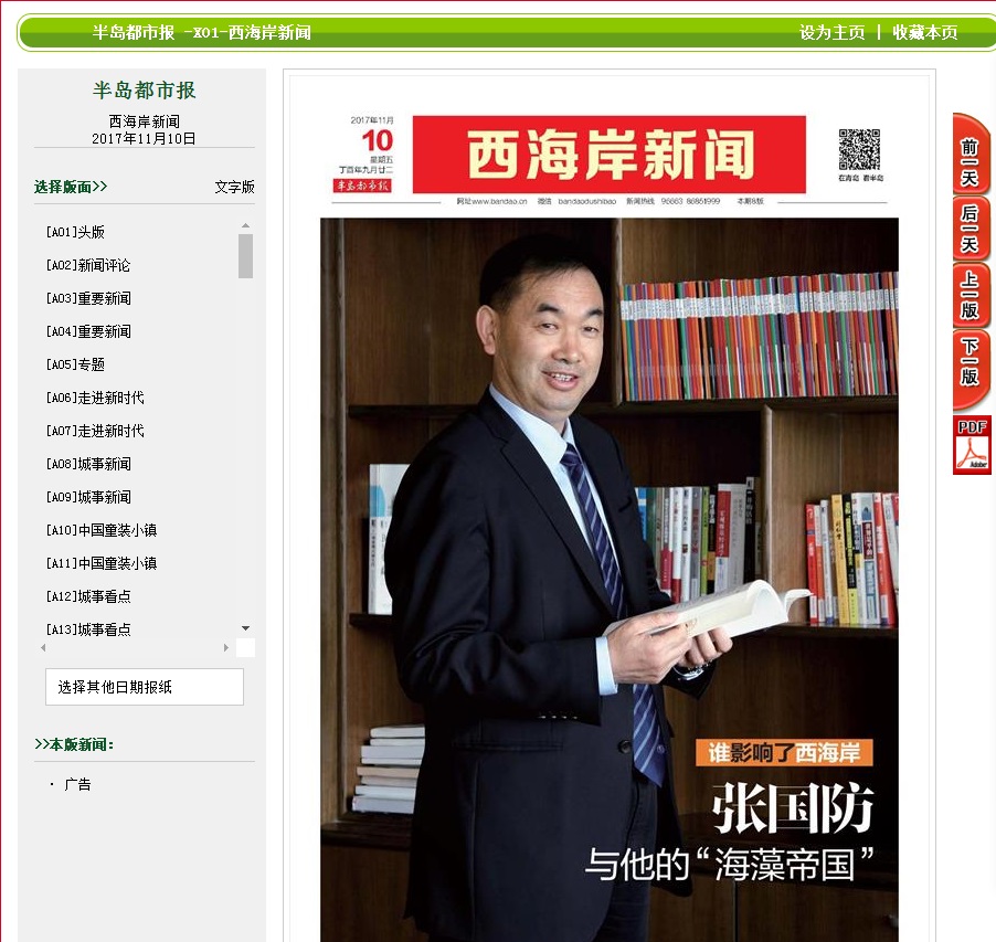 明月海藻集團董事長張國防接受《青島日報》等媒體采訪