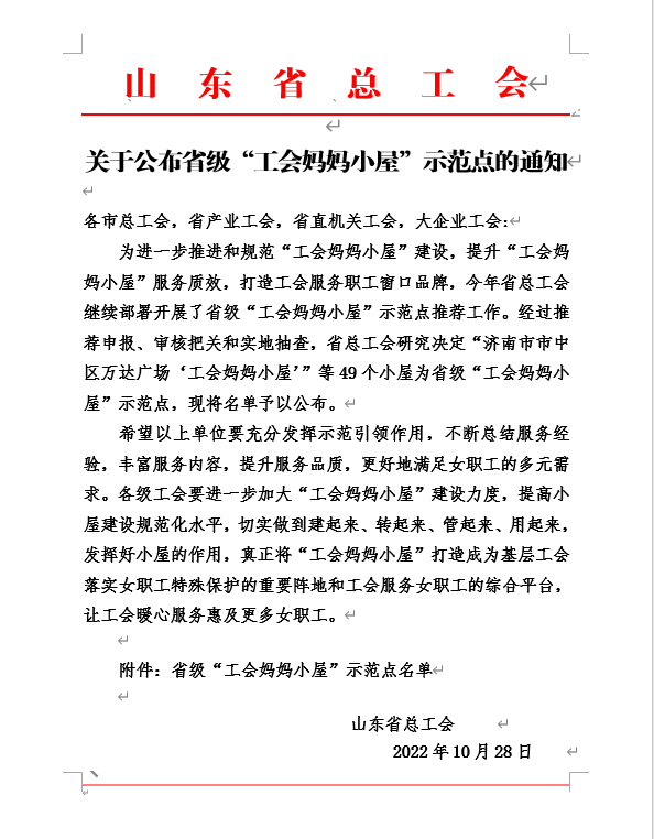 為進(jìn)一步推進(jìn)和規(guī)范“工會(huì)媽媽小屋”建設(shè),提升“工會(huì)媽媽小屋”服務(wù)質(zhì)效,打造工會(huì)服務(wù)職工窗口品牌,今年省總工會(huì)繼續(xù)部署開展了省級“工會(huì)媽媽小屋”示范點(diǎn)推薦工作。經(jīng)過推薦申報(bào)、審核把關(guān)和實(shí)地抽查,青島明月海藻集團(tuán)“工會(huì)媽媽小屋”獲評省級“工會(huì)媽媽小屋”示范點(diǎn)。