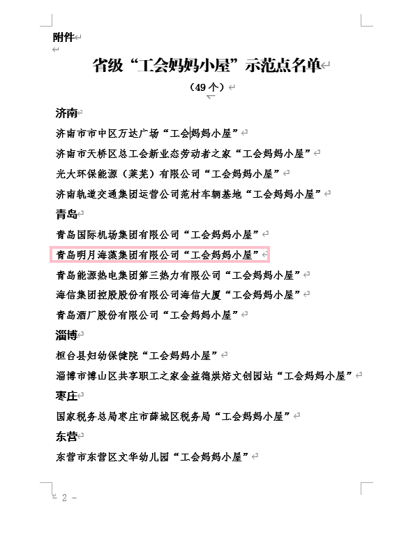 明月海藻集團(tuán) “工會(huì)媽媽小屋”獲評省級示范點(diǎn)