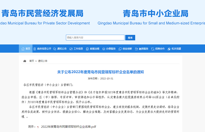 日前,青島市民營經(jīng)濟(中小企業(yè))發(fā)展工作領(lǐng)導(dǎo)小組辦公室公布了2022年度青島市民營領(lǐng)軍標(biāo)桿企業(yè)名單,這是青島首次評選民營領(lǐng)軍標(biāo)桿企業(yè)。青島明月海藻集團光榮上榜,成為“2022年度青島市民營領(lǐng)軍標(biāo)桿企業(yè)”。