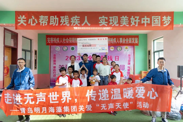 為關(guān)愛殘障兒童,積極承擔(dān)社會(huì)責(zé)任,5月20日,在第33個(gè)“全國助殘日”來臨之際,青島明月海藻集團(tuán)團(tuán)委組織部分青年志愿者代表前往青島西海岸新區(qū)東方聾兒語訓(xùn)中心,開展以“走進(jìn)無聲世界,傳遞溫暖愛心”為主題的助殘活動(dòng)。