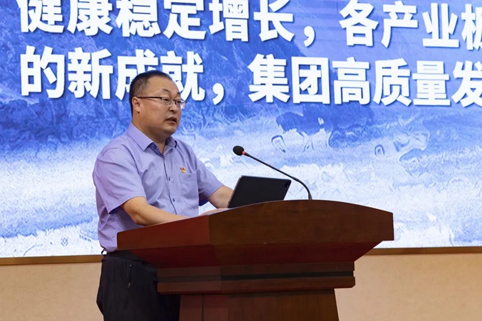 會議伊始,與會人員首先觀看了2023年《凝聚非凡偉力,堅守初心前行》半年總結(jié)主題視頻,之后,集團總裁劉兆志對2023年上半年經(jīng)營情況作了全面總結(jié)。