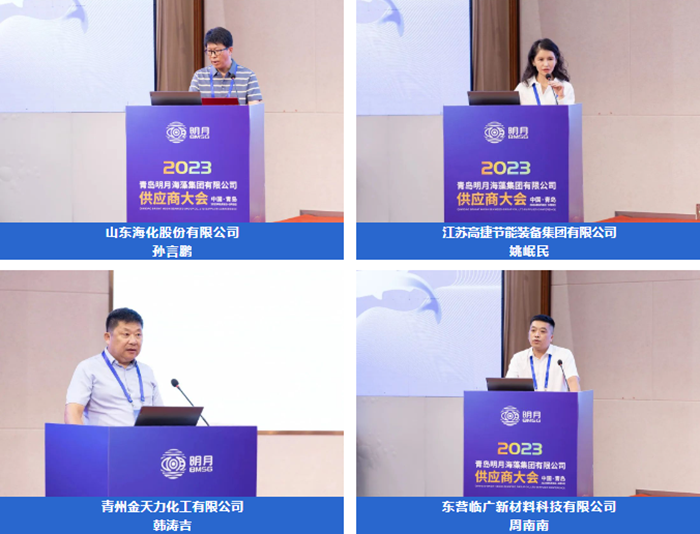 山東?;煞萦邢薰緦O言鵬、江蘇高捷節(jié)能裝備集團(tuán)有限公司姚岷民、青州金天力化工有限公司韓濤吉、東營臨廣新材料科技有限公司周南南幾位供應(yīng)商代表上臺分享“他們和明月的故事”。通過他們的講述,讓大家全方位、多角度地了解了一個充滿情懷與溫度的多彩明月。