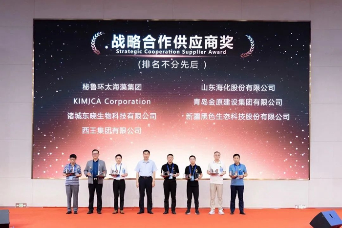 青島明月海藻集團(tuán)黨委書記、董事局主席張國防為“戰(zhàn)略合作供應(yīng)商獎”獲獎?wù)哳C獎