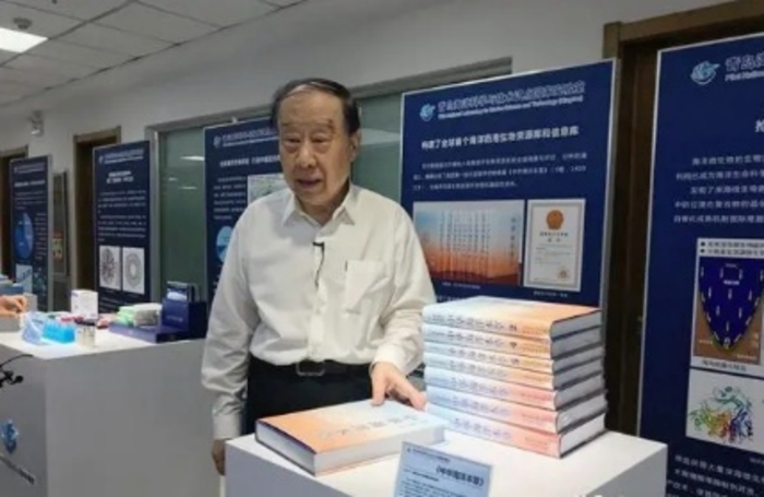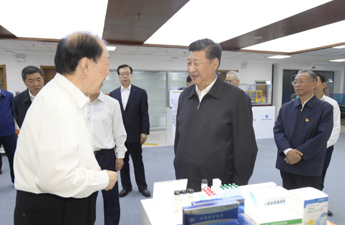 2018年6月12日上午,習近平在青島海洋科學與技術試點國家實驗室,聽取了79歲的中國工程院院士管華詩關于海洋藥物研發(fā)情況的介紹。