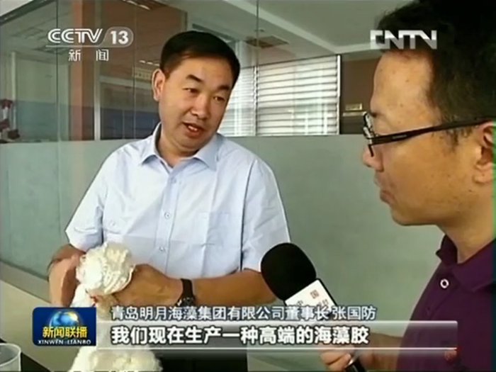 2013年9月19日(中秋節(jié)),CCTV-1《新聞聯(lián)播》頭條播發(fā)【經(jīng)濟轉(zhuǎn)型進行時】打造經(jīng)濟增長的藍色發(fā)動機,報道青島明月海藻集團以科技創(chuàng)新引領藍色經(jīng)濟實現(xiàn)轉(zhuǎn)型升級。