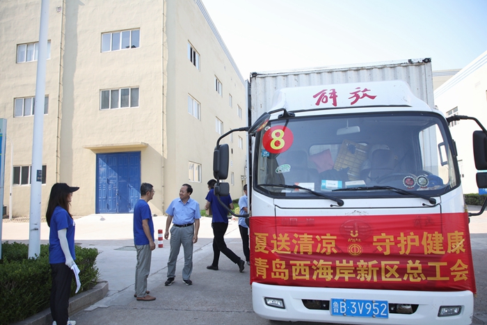 西海岸新區(qū)總工會“高溫送清涼”暖心抵達(dá)明月海藻集團(tuán)