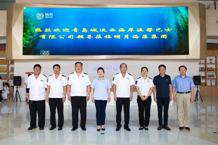 城運(yùn)西海岸交通發(fā)展集團(tuán)有限公司公交運(yùn)營(yíng)事業(yè)部副部長(zhǎng)、西海岸溫馨巴士有限公司黨支部組織委員、工會(huì)主席任顯寶、城運(yùn)西海岸交通發(fā)展集團(tuán)有限公司公交運(yùn)營(yíng)事業(yè)部副部長(zhǎng)、紀(jì)檢委員、安全總監(jiān)李玉俊一行,在明月海藻集團(tuán)黨委副書(shū)記、工會(huì)主席楊曉菁、健康科技黨支部書(shū)記劉振鋒、黨工群團(tuán)中心主任封安波陪同下,參觀(guān)了中國(guó)海藻科技館、海藻部落、海藻健康舫,了解了明月海藻集團(tuán)通過(guò)不斷提升海洋新質(zhì)生產(chǎn)力,把一棵小海藻做成一個(gè)大健康產(chǎn)業(yè)的創(chuàng)新發(fā)展之路。