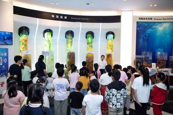 與此同時(shí),孩子們?cè)谥v解員的陪伴下,參觀了中國海藻科技館與海藻部落,通過互動(dòng)體驗(yàn)、科普講解等形式,近距離感受了海藻的神奇魅力與廣泛應(yīng)用。那些色彩斑斕、形態(tài)各異的海藻標(biāo)本,以及通過高科技手段展現(xiàn)的海藻生長過程,讓孩子們瞪大了眼睛,滿是好奇與驚嘆,對(duì)海洋的奧秘充滿了無限向往。