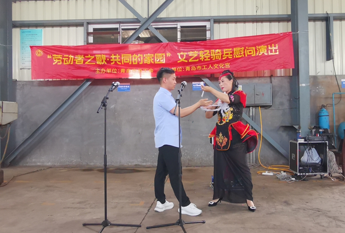 6月12日,由青島市總工會(huì)主辦,青島市工人文化宮承辦,青島市工人文化宮聯(lián)盟、青島西海岸新區(qū)工人文化宮協(xié)辦的“文藝輕騎兵”首場(chǎng)演出在明月海藻集團(tuán)隆重舉行。這場(chǎng)以“中國(guó)夢(mèng)·勞動(dòng)美——?jiǎng)趧?dòng)者之歌·共同的家園”為主題的深情慰問,由青島市知名藝術(shù)家代表聯(lián)袂呈現(xiàn),將精心編排的藝術(shù)盛宴直接送達(dá)生產(chǎn)一線,不僅彰顯了市總工會(huì)對(duì)基層勞動(dòng)者的高度重視,也體現(xiàn)了明月作為演出基地的獨(dú)特價(jià)值與認(rèn)可。平日機(jī)器轟鳴的奮斗空間,此刻化身承載藝術(shù)與敬意的舞臺(tái),吸引了眾多一線員工現(xiàn)場(chǎng)觀看。集團(tuán)工會(huì)主席楊曉菁、黨群中心主任封安波、生產(chǎn)總監(jiān)王培崗等領(lǐng)導(dǎo)共同出席觀禮。