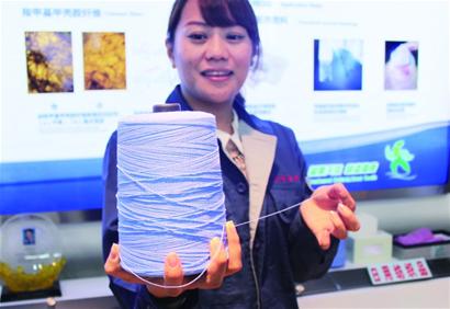 “這就是我們準(zhǔn)備推出的新產(chǎn)品——一種新型醫(yī)用輔料,它是以從海藻中分離出的海藻酸為原料制成的?!崩羁刹嬖V記者,這種紗布是從海藻中提取海藻酸形成海藻酸鈉制成的,具有高濕性、止血快、易去除等多種優(yōu)點,“當(dāng)海藻酸鹽纖維用于傷口接觸層時,與傷口滲出液接觸,海藻酸鹽中的鈣離子和滲出液中的鈉離子發(fā)生交換,生成可溶性的鈉鹽。這個離子交換反應(yīng)使得海藻酸鹽膨脹并在傷口表面形成一種濕的凝膠膜。這種凝膠膜是親水性的,可使氧氣通過而細(xì)菌不能通過,并促進(jìn)新組織的生成?!睆慕?jīng)濟(jì)效益角度來講,10平方厘米的一塊“海藻繃帶”售價就高達(dá)80元,給企業(yè)帶來的產(chǎn)值比過去翻了十倍以上。