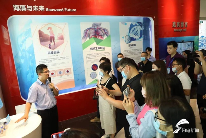 8月17日,來自人民網(wǎng)、新華網(wǎng)、央視網(wǎng)、國際在線等近30家中央、省、市級網(wǎng)絡(luò)媒體組成的“港口雄開萬里流”采訪團(tuán)走進(jìn)青島明月海藻集團(tuán),感知明月海藻深耕海洋科技創(chuàng)新的發(fā)展歷程和科研成果。