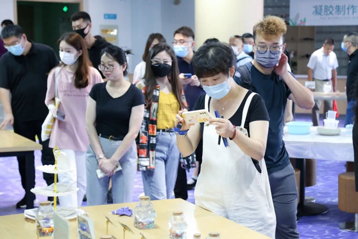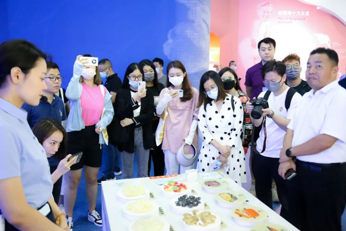 “也許您并不知道,很多火腿腸中的白色物質(zhì)其實(shí)并不是脂肪和肥肉,而是海藻酸鈉。海藻酸鈉能夠有效改善肉制品的品質(zhì),在肉類制品加工過程中有重要的應(yīng)用價(jià)值,可以替代部分脂肪,降低約50%動(dòng)物脂肪的用量,形成健康低脂的特點(diǎn)?!痹诿髟潞T寮瘓F(tuán)的海藻科技館內(nèi),火腿腸、冰淇淋、啤酒、面包等食品類展臺吸引了大家的目光,而得知這一“真相”后,很多人直呼確實(shí)漲了知識。
