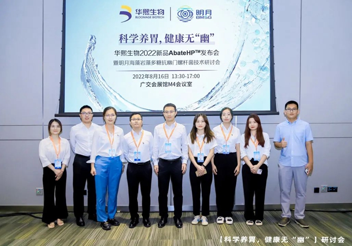 8月16日下午,明月海藻集團在FIC2022展會M4報告廳舉辦明月海藻巖藻多糖抗幽門螺桿菌技術(shù)研討會,圍繞“科學養(yǎng)胃 健康無‘幽’”的主題,展示BMSFu?巖藻多糖在清幽賽道上的技術(shù)革新及應(yīng)用創(chuàng)新,分享胃腸健康未來趨勢,致力于打造差異化的胃腸道健康解決方案。